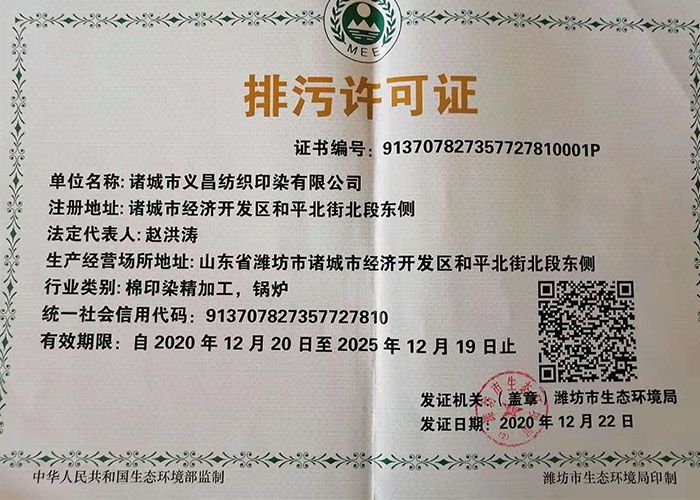 諸城市義昌紡織印染有限公司                              通訊地址:山東諸城市開發區和平北街北段東側